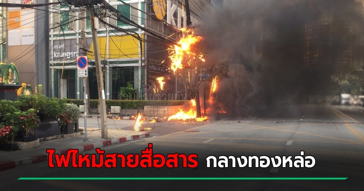 นาทีระทึก ไฟลุกท่วมไหม้สายสื่อสาร กลางทองหล่อ พบไฟฟ้าลัดวงจร เร่งฉีดน้ำดับเพลิง พบไฟสงบแล้วหลังลุกไหม้นาน 20 นาที