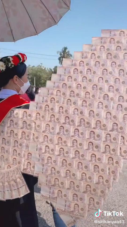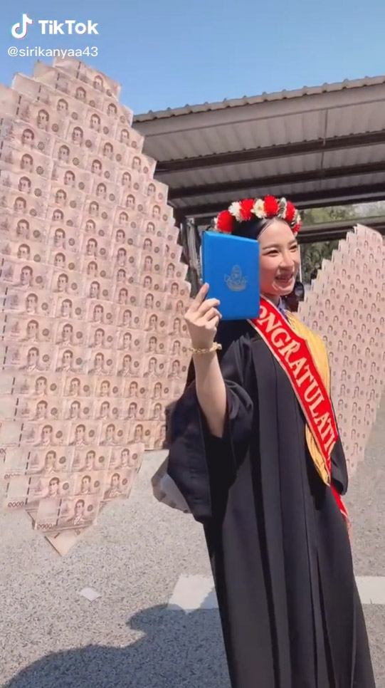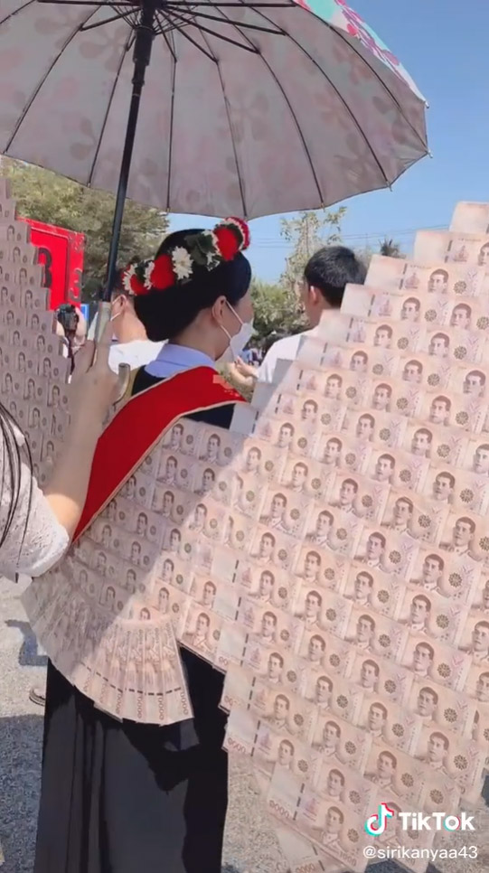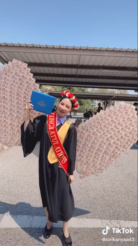 คลิปไวรัล 7 ล้านวิว บัณฑิตสาวป้ายแดงกับของขวัญสุดฮือฮา ปีกนางฟ้ายักษ์ทำจากเงินสดแบงก์พัน เรียนจบแล้วรับทรัพย์สุดปัง ไม่อยากได้แล้วชุดโกโกวา อยากได้ปีกนางฟ้ามาใส่