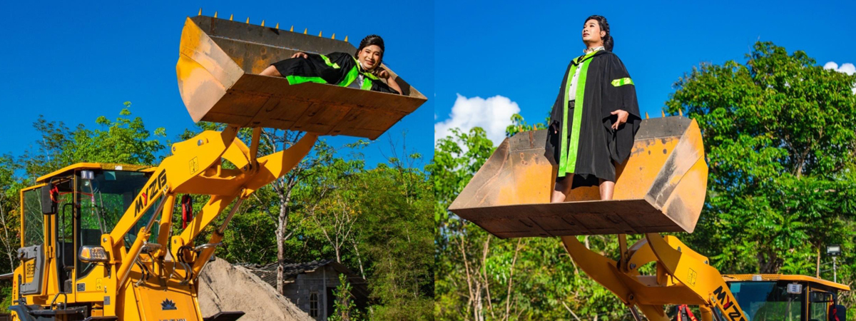 รับปริญญาทั้งที ต้องทำให้คนทั้งโลกจดจำ ใส่ชุดครุยถ่ายรูปกับรถแทรกเตอร์ พร้อมโพสท่าสุดปัง
