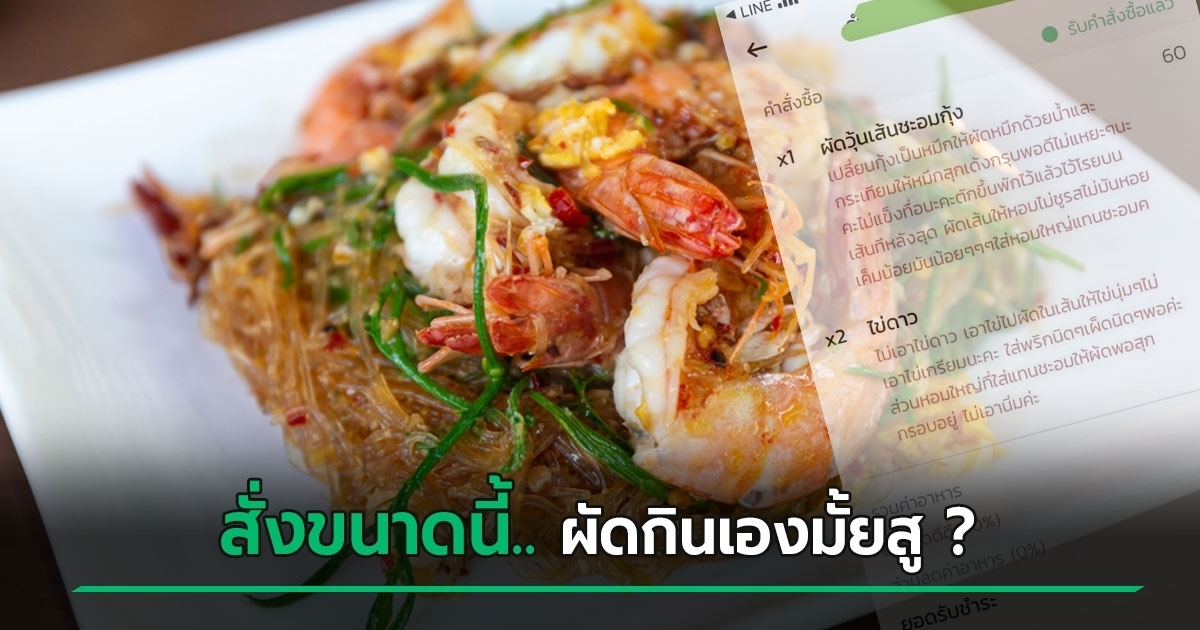 ลูกค้าสั่งผัดวุ้นเส้นชะอมกุ้ง เขียนละเอียดยิบยันการพักเส้น แถมไข่ดาวก็ยังไม่ธรรมดา จนนึกว่าแจกสูตรให้ร้าน โซเชียลแชร์สนั่น ถ้าจะขนาดนี้ทำกินเองเถอะจ้า