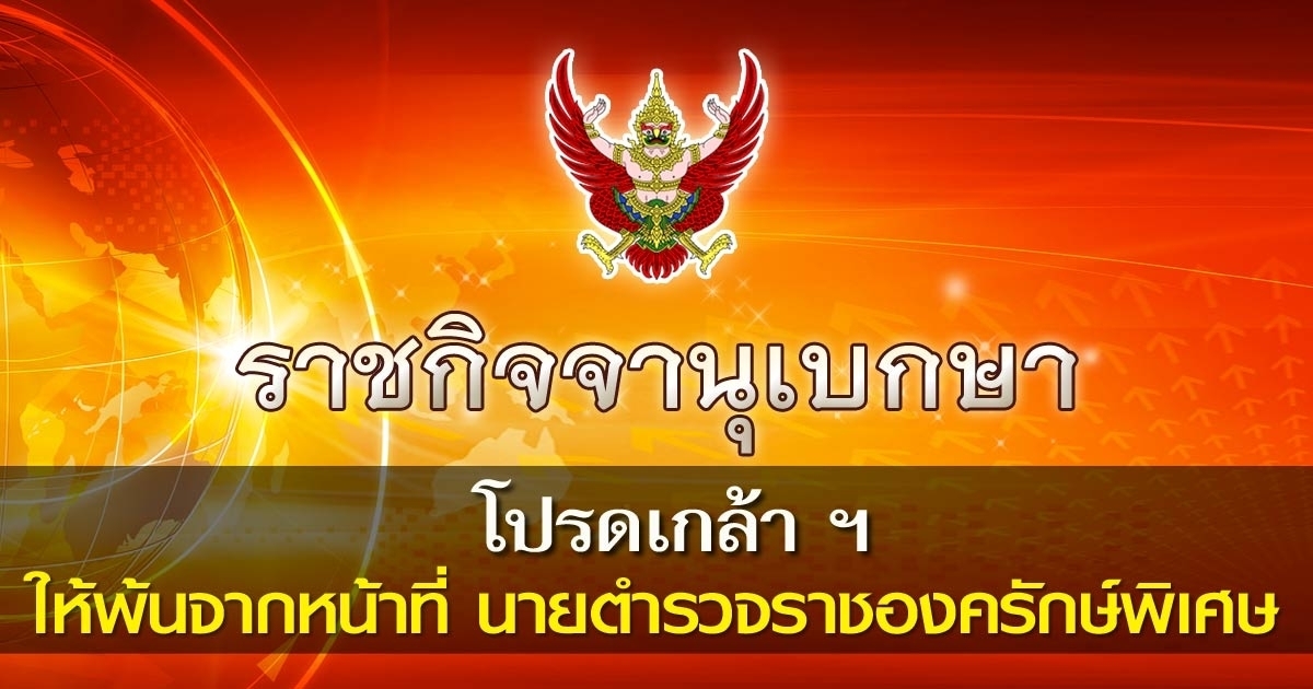 อาศัยอำนาจตามความในมาตรา 15 ของรัฐธรรมนูญแห่งราชอาณาจักรไทย พุทธศักราช 2560 มาตรา 4 มาตรา 6 และมาตรา 9 แห่งพระราชบัญญัตินายตำรวจราชสำนัก พ.ศ.2495 จึงทรงพระกรุณาโปรดเกล้าโปรดกระหม่อมให้พ้นจากการปฏิบัติหน้าที่นายตำรวจราชองครักษ์พิเศษ จำนวน 2 นาย ดังนี้
