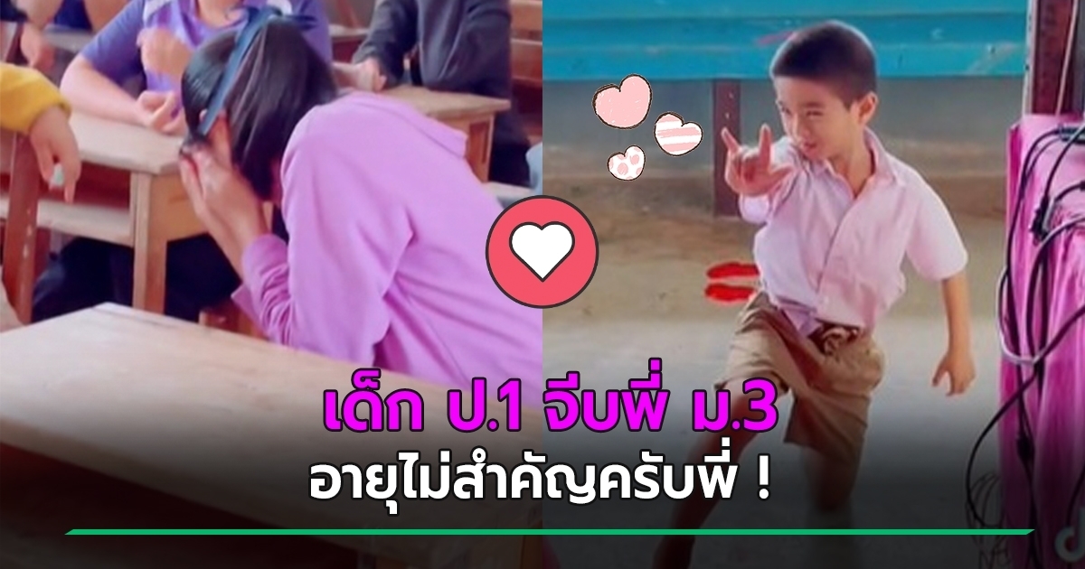ไวรัล 8 ล้าน เทรนด์รักต่างวัยกำลังมาแรง เมื่อน้องอะตอม เด็ก ป.1 เข้ามาร้องเพลงจีบพี่เนย ชั้น ม.3 ถึงหน้าชั้นเรียน งานนี้ฮาครืนยกชั้น พี่เนยได้แต่อายม้วน ปิดหน้าไม่กล้ามอง