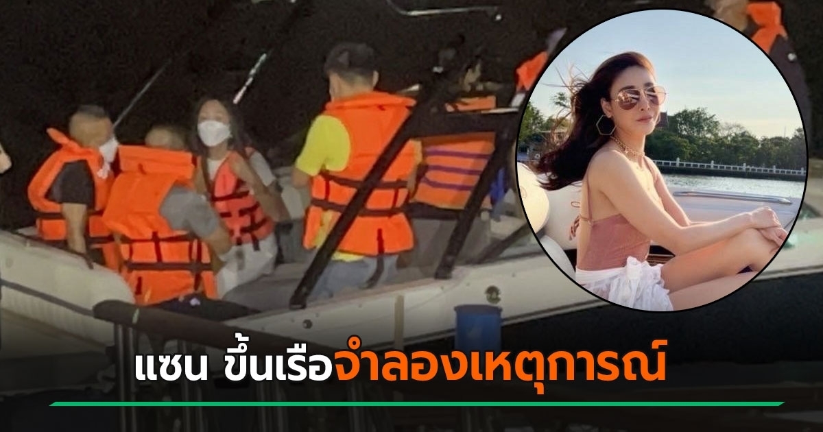เจ้าหน้าที่ตำรวจพา แซน ลงเรือสปีดโบ๊ท รุ่นเดียวกับ ไฮโซปอ เพื่อจำลองเหตุการณ์ แตงโม นิดา ตกเรือ ณ จุดเกิดเหตุ ในช่วงเวลาเดิม หลังระบุว่า แตงโมจับขาก่อนพลัดตกแม่น้ำเจ้าพระยา