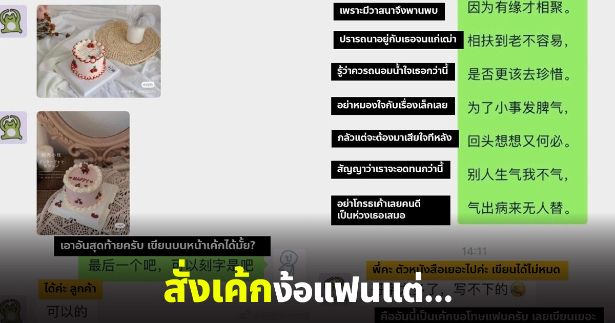 เมื่อหนุ่มจีนซื้อเค้กง้อแฟน สั่งเจ้าของร้านทำตามอย่างที่บอก แต่สิ่งที่ได้ไม่เป็นอย่างที่คิด