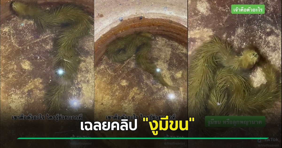 เรียกได้ว่าเป็นคลิปที่ทำเอาหลายคนถึงกับอึ้ง เมื่อเห็นสัตว์ลักษณะประหลาดที่มีลำตัวและเลื้อยคล้ายงู แต่มีขนปกคลุม มันเลื้อยไป-มา อยู่ในบ่อน้ำ ซึ่งเจ้าของคลิปก็ได้ถามว่าเจ้าตัวนี้มันคือตัวอะไรกันแน่ บางคนก็บอกว่ามันคืองูที่มีตะไคร้น้ำเกาะ แต่ตนมองดูแล้วเหมือนกับว่ามันเป็นเส้นขนที่ออกมาจากตัวของมันมากกว่า บางคนก็ให้ข้อมูลงูชนิดต่าง ๆ ที่มีลักษณะคล้ายกัน แต่พอเสิร์ชหาข้อมูลในอินเทอร์เน็ต ก็ไม่พบที่เป็นลักษณะแบบนี้