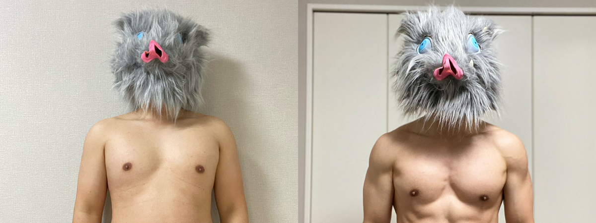 ทวิตเตอร์ @InosukeWorkout ได้เผยภาพหนุ่มมนุษย์เงินเดือนชาวญี่ปุ่น ที่ชื่นชอบตัวละคร อิโนะสุเกะ จากมังงะเรื่อง ดาบพิฆาตอสูร อยากมีหุ่นแบบตัวละครที่ชื่นชอบ จึงเริ่มหันมาออกกำลังกายเป็นประจำ หลังจากที่ครบ 365 วันของการออกกำลังกาย เขาได้โพสต์ภาพเปรียบเทียบระหว่างหุ่นมีพุงของตัวเองในวันแรก กับซิกแพกสุดแน่นในปัจจุบัน ให้ชาวโซเชียลได้ชม