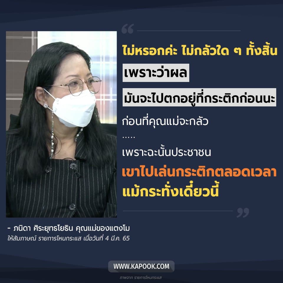 แม่แตงโม ตอบว่า ไม่หรอกค่ะ ไม่กลัว เพราะว่าผลจะไปตกอยู่ที่กระติกก่อน ก่อนที่คุณแม่จะกลัวนะคะ เพราะฉะนั้นประชาชนเนี่ยเขาไปเล่นกระติกตลอดเวลาแม้กระทั่งเดี๋ยวนี้