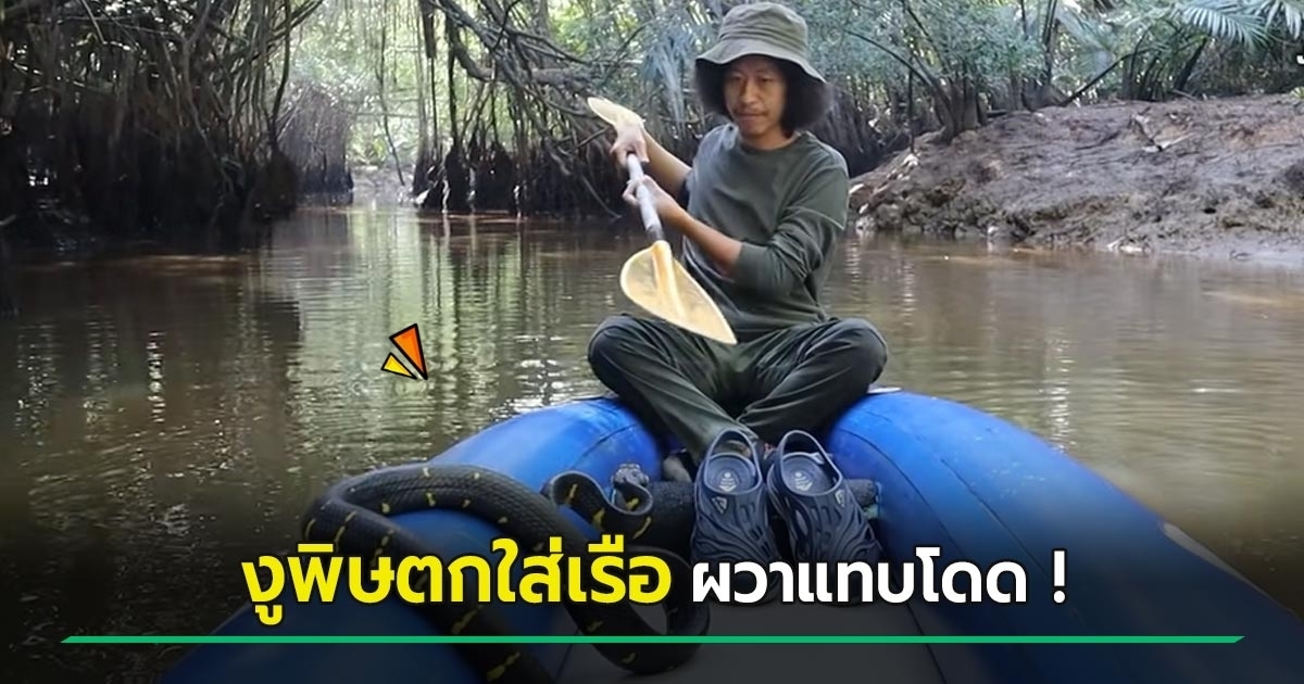 ผวายกเรือ โจโฉ ผุดคลิปงูปล้องทองตกใส่เรือ ตากล้องแทบโดดน้ำ คนดราม่า อันตรายไปไหม หลังจงใจ เขย่าให้งูตกมาบนเรือ แถมยังเกือบฉก