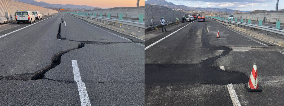 ส่องภาพทางด่วนโทโฮคุ เสียหายหลังเกิดเหตุแผ่นดินไหว เจ้าหน้าที่ใช้เวลาซ่อมไม่ถึง 1 วัน กลับมาเหมือนเดิมปกติ