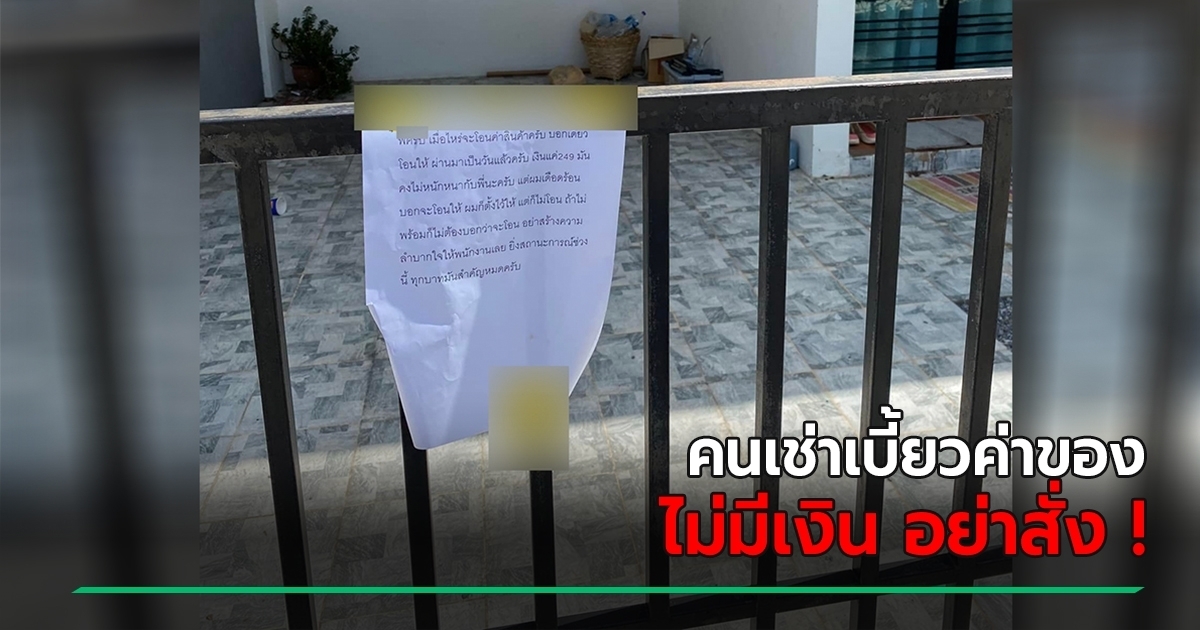 พนักงานส่งของสุดทน ติดป้ายทวงหน้าบ้าน หลังคนเช่าบ้าน