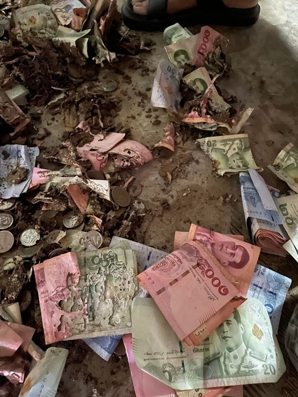 หญิงเตือนภัยคนออมเงิน หยอดกระปุกทุกวันไม่ทันเอะใจ รู้ตัวอีกทีปลวกกินเงินหายไปเป็นแสน ทิ้งไว้แค่เศษธนบัตรจำนวนมาก