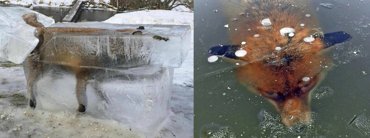สุนัขจิ้งจอกตายแบบไม่รู้ตัว ระหว่างข้ามทะเลสาบ ได้ตกลงไปในน้ำและกลายเป็นน้ำแข็ง