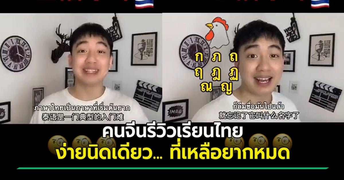 เปิดคลิปไวรัล หนุ่มจีนรีวิวการเรียนภาษาไทย ซับซ้อนสุด ๆ ตัวอักษรก็คล้ายกัน ออกเสียงก็คล้ายกัน พยัญชนะยังมีเสียงสูงเสียงต่ำ แุถมเอาวรรณยุกต์มาคุมเสียงอีก แถมตัววิธีการเขียนยังคล้าย ๆ กัน ก-ภ-ถ แทบแยกไม่ออก ฮา..