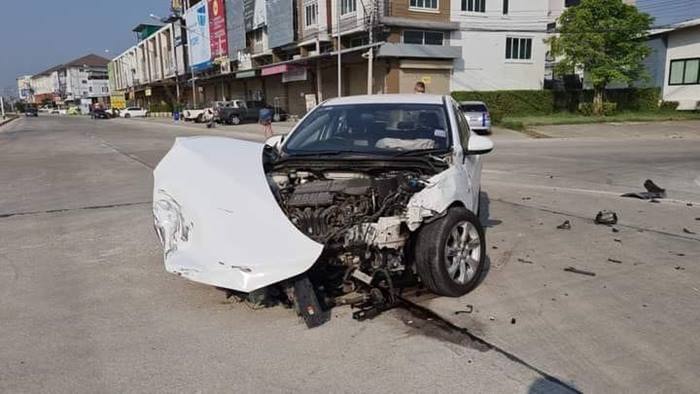 เปิดภาพหลังคลิปคนขับกระบะลั่น กูไม่เบรกนะ รถเจ้าตัวสภาพล้อชี้ฟ้า กวาดเสาไฟไป 1 ต้น คู่กรณีหน้ารถยับ คอมเมนต์สนั่น ถ้าไม่ฝ่าไปคงไม่เกิดเหตุ