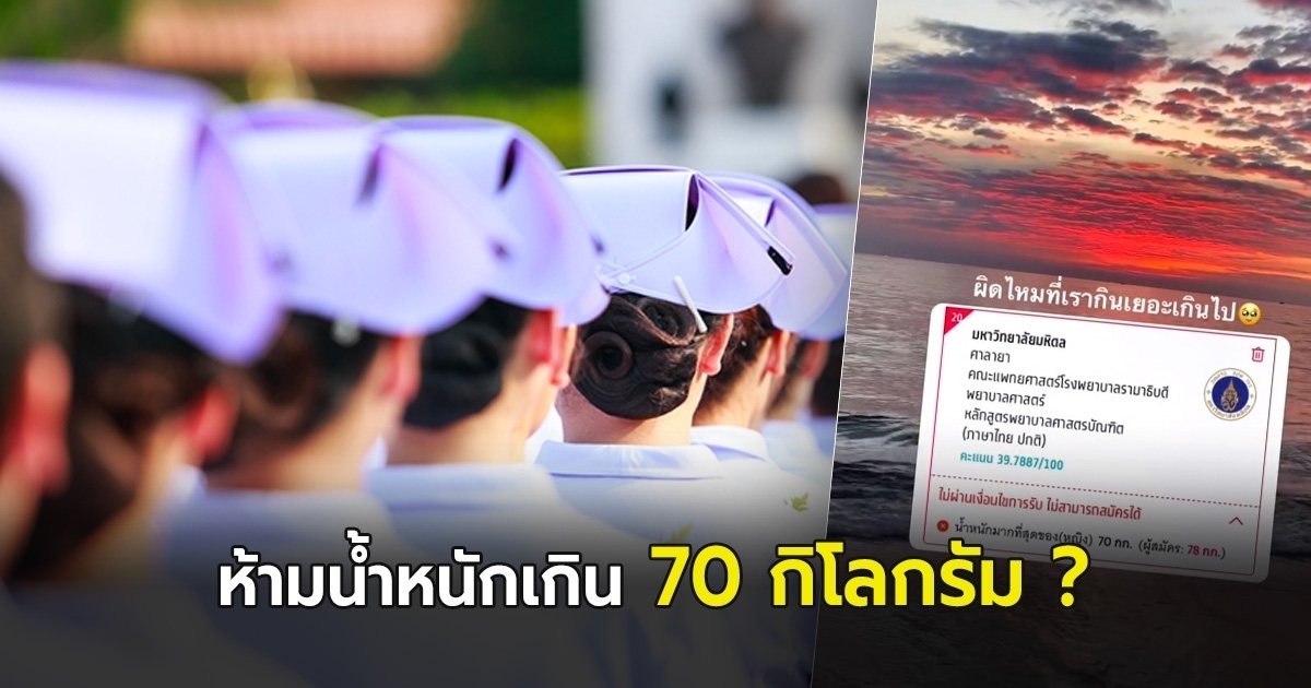 เด็ก ม.6 เศร้าเลย จะยื่นเรียนพยาบาล แต่เจอหลักเกณฑ์เรื่องน้ำหนักตัว ห้ามเกิน 70 กิโลกรัม ไม่สามารถสมัครได้ ผิดไหมที่เรากินเยอะไป แล้วเอายังไงต่อดี... ?!