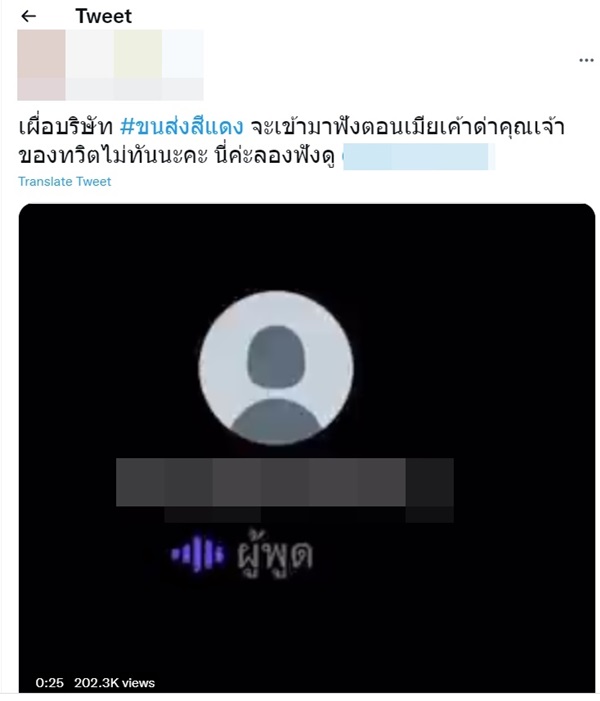 ด้วยเหตุการณ์นี้ทำให้นางสาวเอเสียความรู้สึก เลยแคปแชตมาบ่นลงทวิตเตอร์ แต่ไม่ได้ระบุตัวตนชัด ๆ ว่าใคร แต่กลายเป็นว่าแฟนของขนส่งมาเห็นแชตนั้น จึงมีการเปิดทวิตเตอร์สเปซเคลียร์ใจกัน
