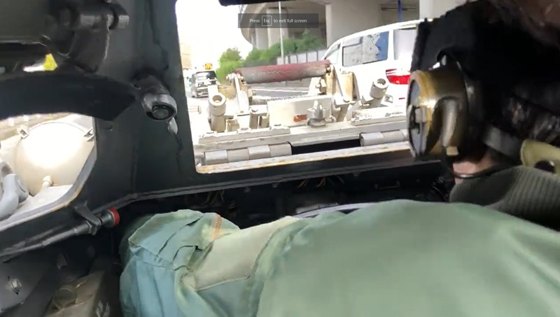พร้อมกันนั้นเขายังแนบภาพประกอบ เผยให้เห็นรถคันพิเศษของเขาที่จอดอยู่บริเวณหน้าร้านสะดวกซื้อ ซึ่งรถที่ว่านั่นไม่ใช่รถยนต์หรือมอเตอร์ไซค์ธรรมดา แต่พารถถังบุกมาทั้งคัน