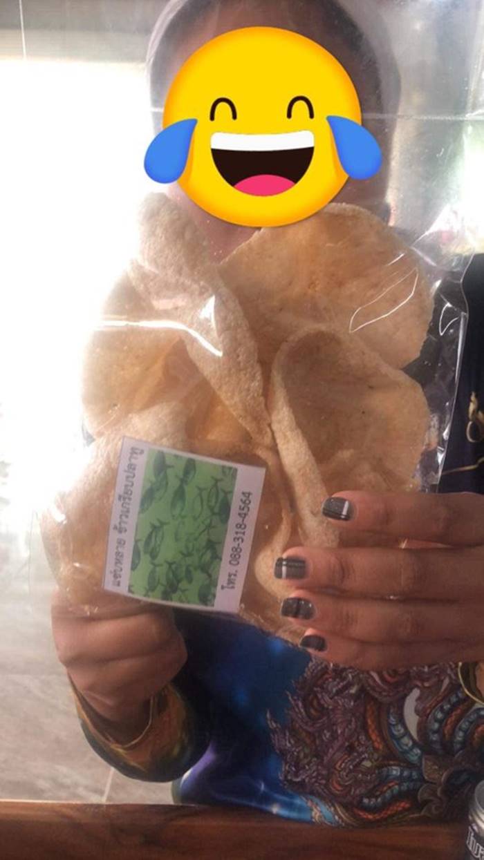 ทั้งนี้ เจ้าของโพสต์เผยภาพข้อความแชตที่ส่งหาพี่ที่บ้าน โดยมีการส่งข่าวดังกล่าวไปให้ พร้อมกับข้อความแซวขำ ๆ ว่า "พระบิดาเอาไปฝากขายที่ร้านมั้ยนิ" ทว่า งานนี้ทำเอาเจ้าตัวขำไม่ออก เพราะปลายทางซึ่งเป็นพี่สาวส่งรูปกลับมา เป็นภาพถ่ายนั่งถือถุงข้าวเกรียบ ยี่ห้อของพระบิดาที่เห็นจากข่าวแบบเป๊ะ ๆ