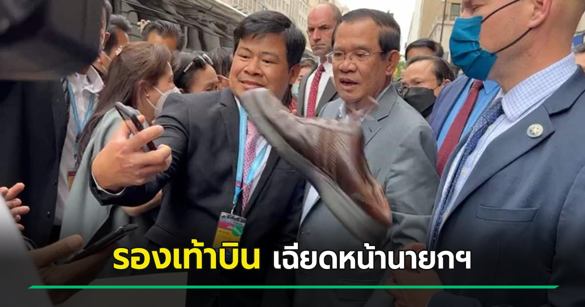 สมเด็จฮุน เซน นายกรัฐมนตรีกัมพูชา เจอปารองเท้าเฉียดหน้า ขณะไปร่วมประชุมที่สหรัฐฯ คนแค้นลั่น เกลียดเผด็จการ ฆ่าประชาธิปไตย