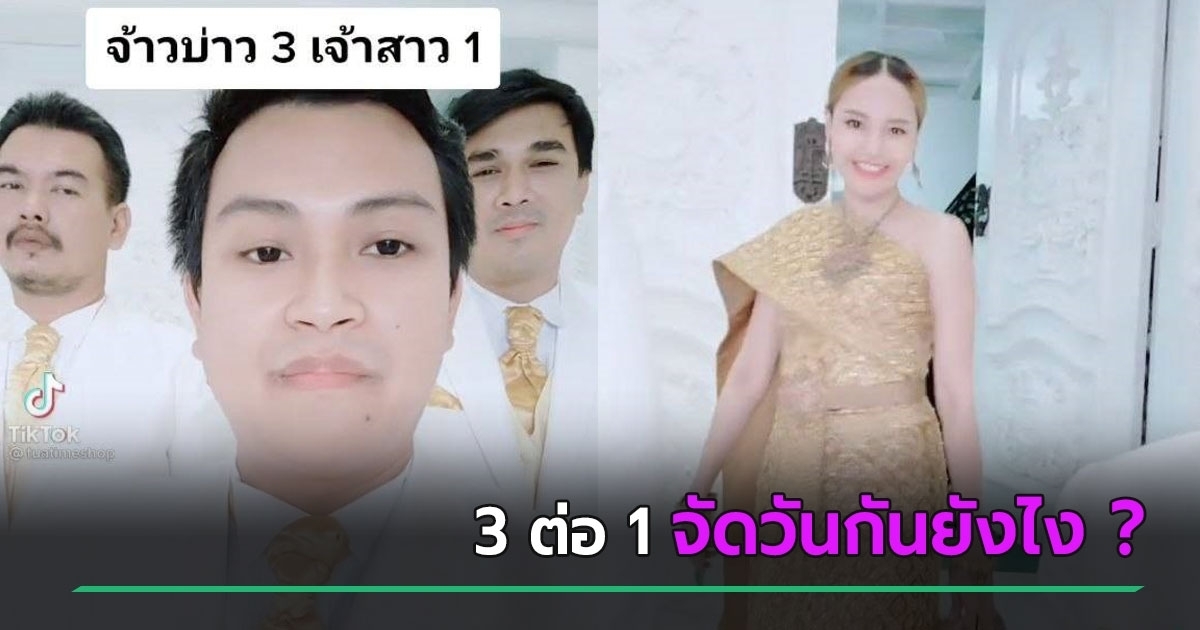 เจ้าบ่าว 3 หนุ่ม 3 มุม พร้อมเจ้าสาว 1 คน แนะนำตัวกับชาว TikTok คนแห่คอมเมนต์ เรื่องจริงหรือคอนเทนต์ ถ้าจริง จัดวันกันยังไง