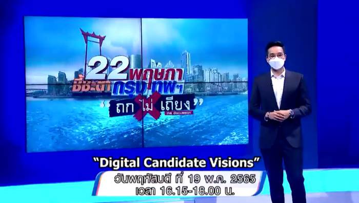 สามารถติดตามได้ในรายการพิเศษ 22 พฤษภา ชี้ชะตากรุงเทพฯ กับ ถกไม่เถียง วันที่ 19 พฤษภาคม 2565 ทางช่อง 7HD ตั้งแต่เวลา 16.15 - 18.00 น.