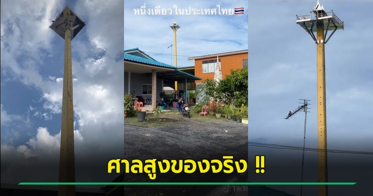 เป็นคลิป TikTok ที่มีคนเข้าดูกันเพียบเพราะนับว่าเป็นเรื่องที่สร้างความประหลาดใจให้ใครหลาย ๆ คน โดย TikTok @w_p0n9 ได้โพสต์คลิปวิดีโอที่เผยให้เห็นศาลพระภูมิของบ้านหลังหนึ่งที่สูงชะลูด เมื่อคาดคะเนด้วยตาเปล่าน่าจะมีความสูงเท่า ๆ กับเสาไฟฟ้าเลยทีเดียว แถมยังติดสายล่อฟ้าเอาไว้ด้วย