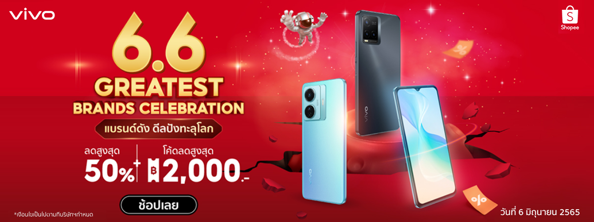 vivo จับมือ Shopee จัดโปรโมชั่นสุดคุ้มกลางปี ในแคมเปญ 6.6 Greatest Brands Celebration ลดสูงสุด 50% พร้อมโค้ดส่วนลดสูงสุด 2,000 บาท