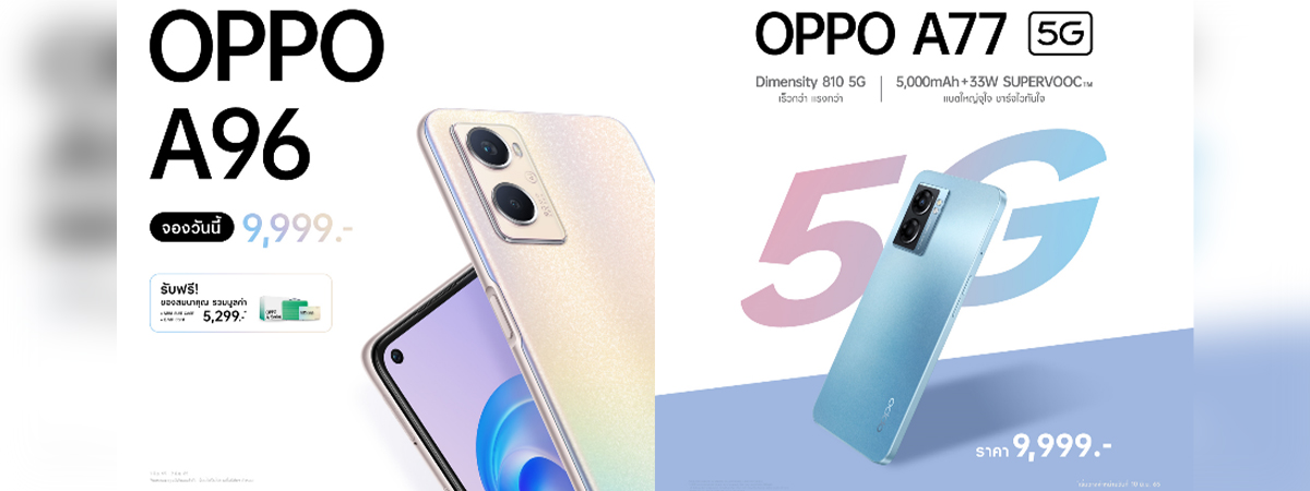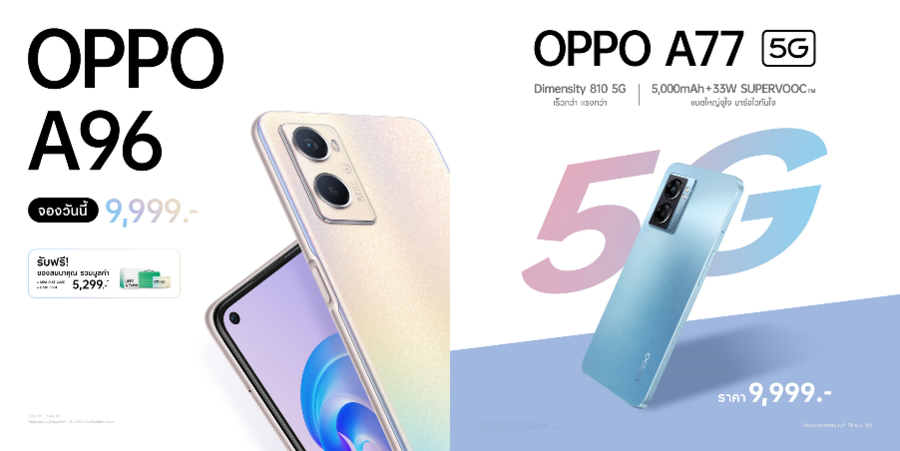 โดย OPPO A96 และ OPPO A77 5G จะเริ่มวางจำหน่ายอย่างเป็นทางการในวันที่ 10 มิถุนายนนี้ เป็นต้นไป ณ OPPO Brand Shop ทุกสาขา และตัวแทนจำหน่ายทั่วประเทศ โดยสามารถติดตามกิจกรรมต่างๆ ได้ทาง Facebook OPPOThai และ YouTube OPPOThailand