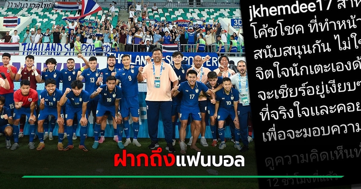 โจนาธาร เข็มดี โพสต์ไอจีเดือด ฝากถึงคนไทยควรสนับสนุน ไม่ใช่ว่ากันเอง แนะถ้าไม่รู้อะไรเกี่ยวกับฟุตบอล ก็เชียร์เงียบๆ พร้อมขอบคุณทุกกำลังใจ
