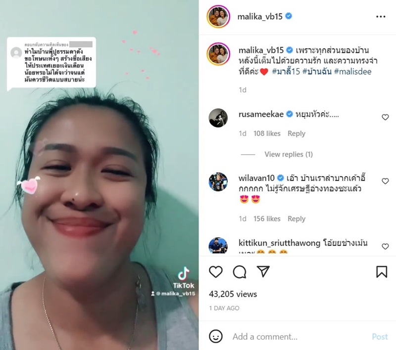 ปู มลิกา กันทอง เจอชาวเน็ตถาม ทำไมบ้านธรรมดาจัง ทั้งที่สร้างชื่อเสียงให้ประเทศ เงินเดือนน้อย ? เจ้าตัวตอบกลับแบบนี้... นิ่ม ๆ แต่กระแทกใจ ชาวเน็ตปรี๊ดแทน บ้านเราลำบากเขาอีก