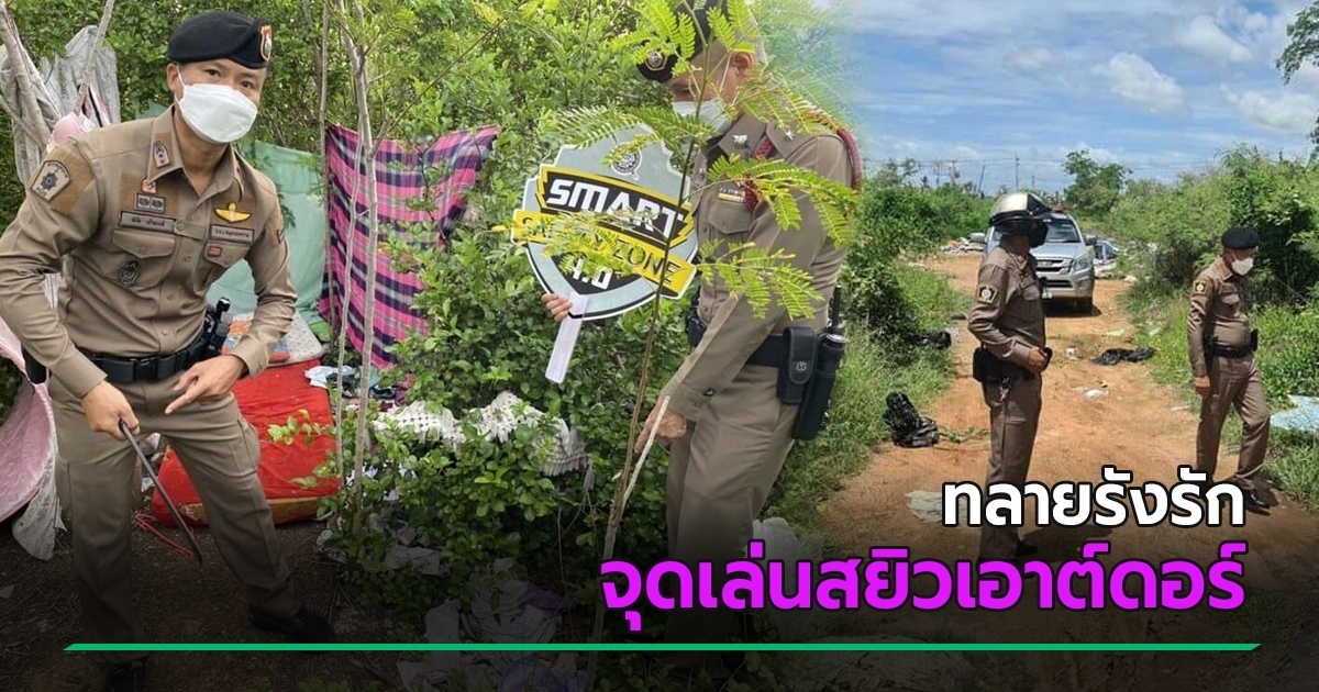 ตำรวจสมุทรสงคราม บุกจุดมั่วสุมในป่าหลังชาวบ้านร้องเรียน พบวางผ้ากั้นเป็นห้องมีเซ็กส์ ทิ้งถุงยางใช้แล้วเกลื่อน เดินหน้ารื้อทิ้งถางป่าให้โล่ง
