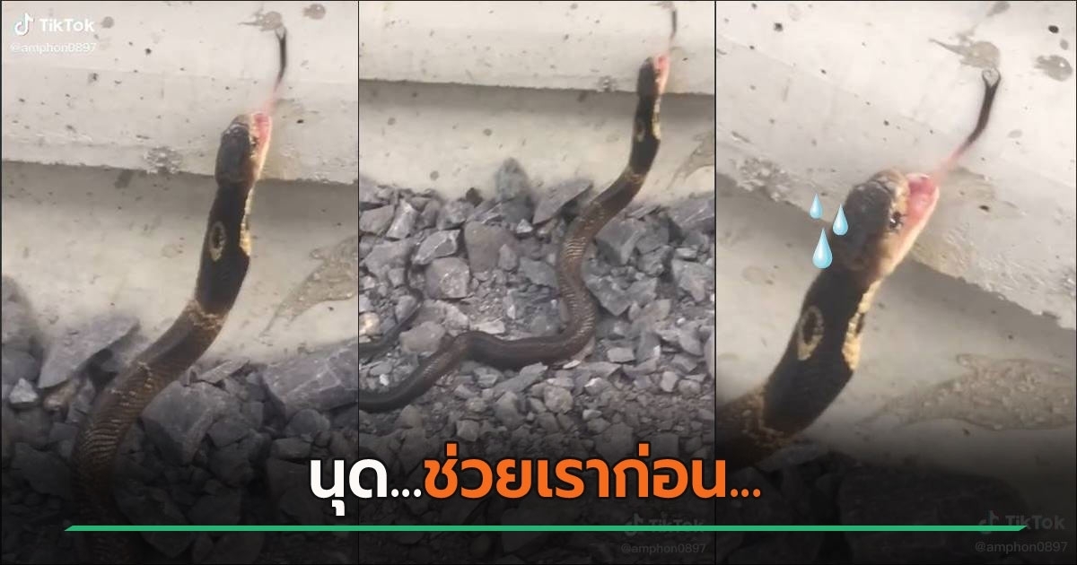 กดห่วงใยรัว ๆ คนเจองูเห่าลิ้นแห้งติดปูนร้อน ๆ อยากช่วย... แต่ใครจะตายก่อน เจ้าของคลิปเผย งูจะโดดข้ามกำแพง แต่ไม่พ้นเลยเป็นแบบนี้