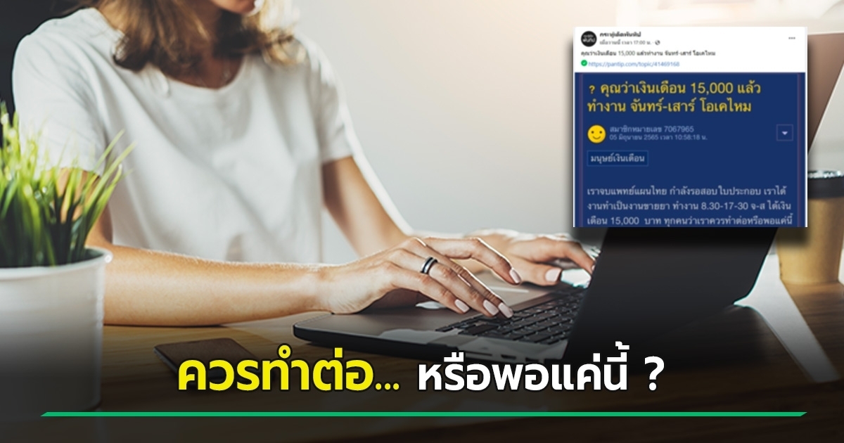 สาวตั้งกระทู้ปรึกษา เงินเดือน 15,000 ทำงานจันทร์-เสาร์ โอเคไหม ควรทำต่อหรือพอแค่นี้ เจอท็อปคอมเมนต์เข้าไปอย่างพีค หรือนี่คือมัลติเวิร์ส