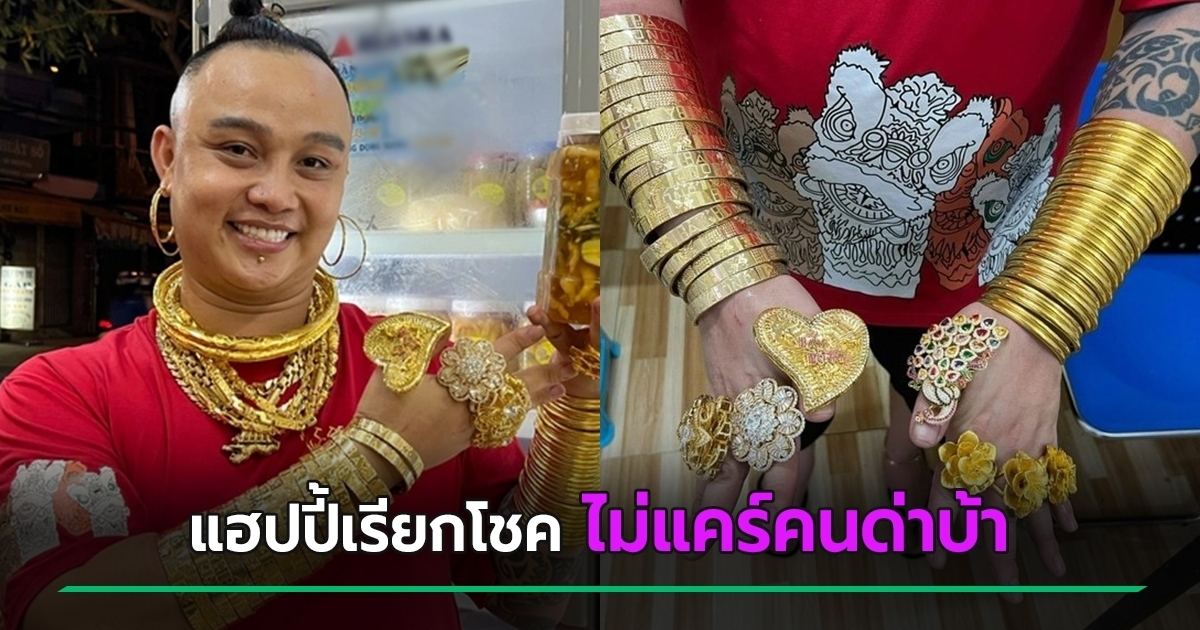 หนุ่มเวียดนามคลั่งทอง สวมทองเต็มตัว ต้อนรับลูกค้าทุกวัน ชี้ถอดแค่ตอนนอนกับอาบน้ำ ถึงกับจ้างบอดี้การ์ดมาดูแล เผยที่หาเงินในตอนนี้ ก็เพื่อเอามาซื้อทอง