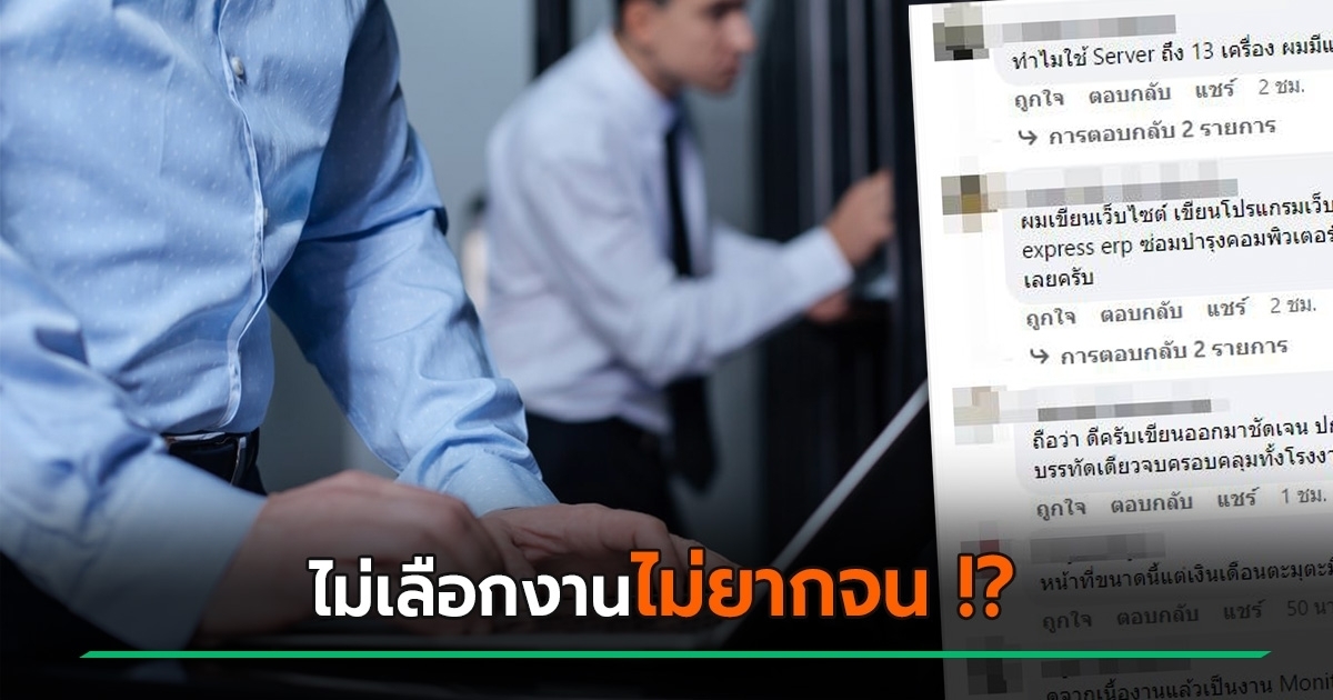 คอมเมนต์สนั่น รับสมัคร IT support หน้าที่ล้านแปด ดูแลระบบทั้งโรงงาน แต่ให้เงินเดือนแค่ 2 หมื่น ซัด กล้าซื้อเซิร์ฟเวอร์ 13 เครื่อง แต่ทำไมไม่ลงทุนกับค่าจ้าง