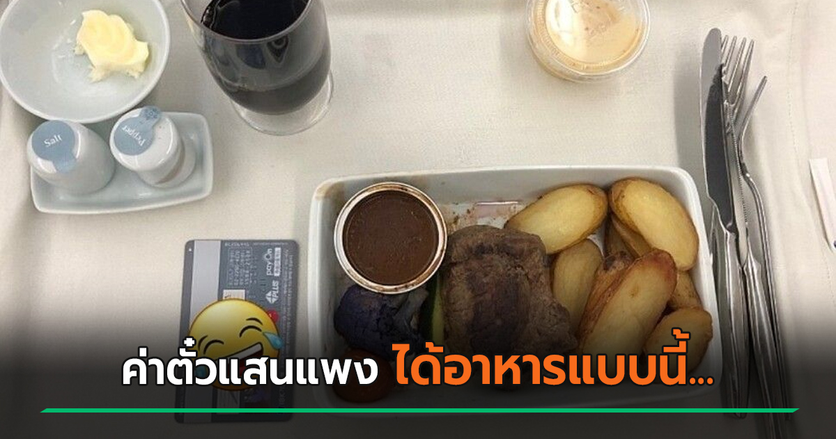 ดราม่าอาหารบนเครื่องบิน ผู้โดยสารโวย จ่ายเงินค่าที่นั่งเกือบ 2 แสน กลับได้รับอาหารแบบนี้ สเต๊กชิ้นจิ๋วเท่าบัตรเครดิต จะขอรามยอนกินเพิ่มก็ยังหมด แบบนี้มันใช่เหรอ