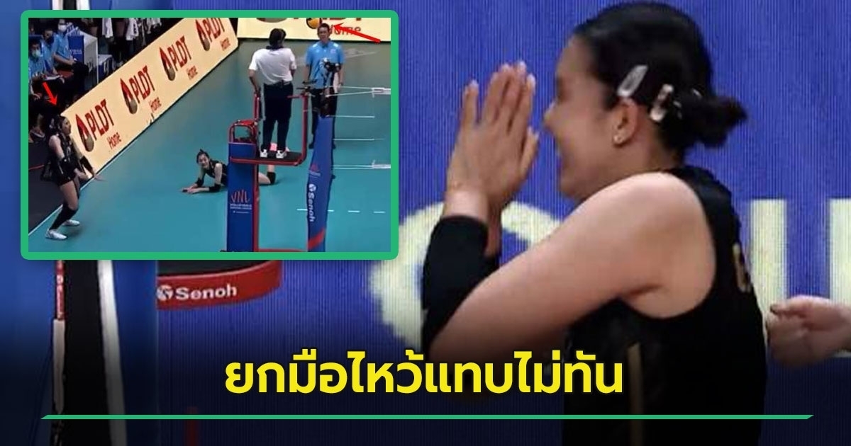 ชมพู่ พรพรรณ เล็งลูกอย่างแม่น แต่ไม่ไปหาฝ่ายตรงข้าม ดันโดนกรรมการเต็ม ๆ ยกมือไหว้แทบไม่ทัน งานนี้เป็นโมเมนต์ที่คนเอ็นดูกันทั้งสนาม ไม่เว้นแม้แต่คนพากย์กีฬา