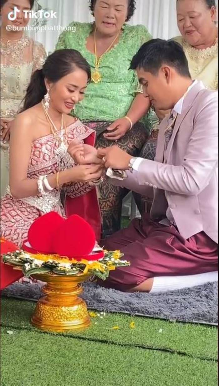 โดยวันที่ 23 มิถุนายน 2565 TikTok@bumbimphatthong ได้โพสต์คลิปพิธีแต่งงานของบ่าวสาวคู่หนึ่ง เมื่อทั้งคู่มีการแลกแหวน สวมสร้อยข้อมือให้กันและกันแล้วนั้น ฝ่ายเจ้าบ่าวก็ดันยกมือไหว้พร้อมพูด "ขอบคุณครับ" ขึ้นมาเฉย ทำเอาเจ้าสาวและผู้ใหญ่ในงานถึงกับขำลั่น