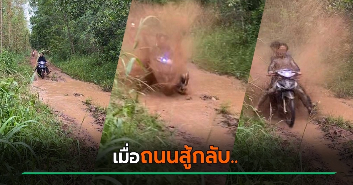 ขี่รถมอเตอร์ไซค์ท้าพิสูจน์ความเร็วกับสภาพถนนลูกรัง หลุมบ่อ น้ำขังกระจาย