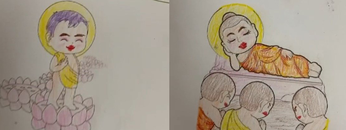 เปิดผลงานระบายสีพระพุทธเจ้าของนักเรียน ใส่จินตนาการแบบจัดเต็ม จนครูเห็นอดขำไม่ได้