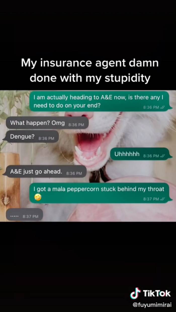 อย่างไรก็ตาม ที่เป็นเช่นนั้นไม่ใช่เพราะเกิดอาการแพ้ และรสเผ็ดร้อนติดชา ๆ ของอาหารมื้อนี้ก็ไม่ได้เกี่ยวอะไรด้วย เพียงแต่พริกเสฉวนที่อยู่ในซุปหม่าล่า ดันเข้าไปแปะติดอยู่ที่คอของเธอ โดยที่เธอไม่สามารถนำมันออกมาได้