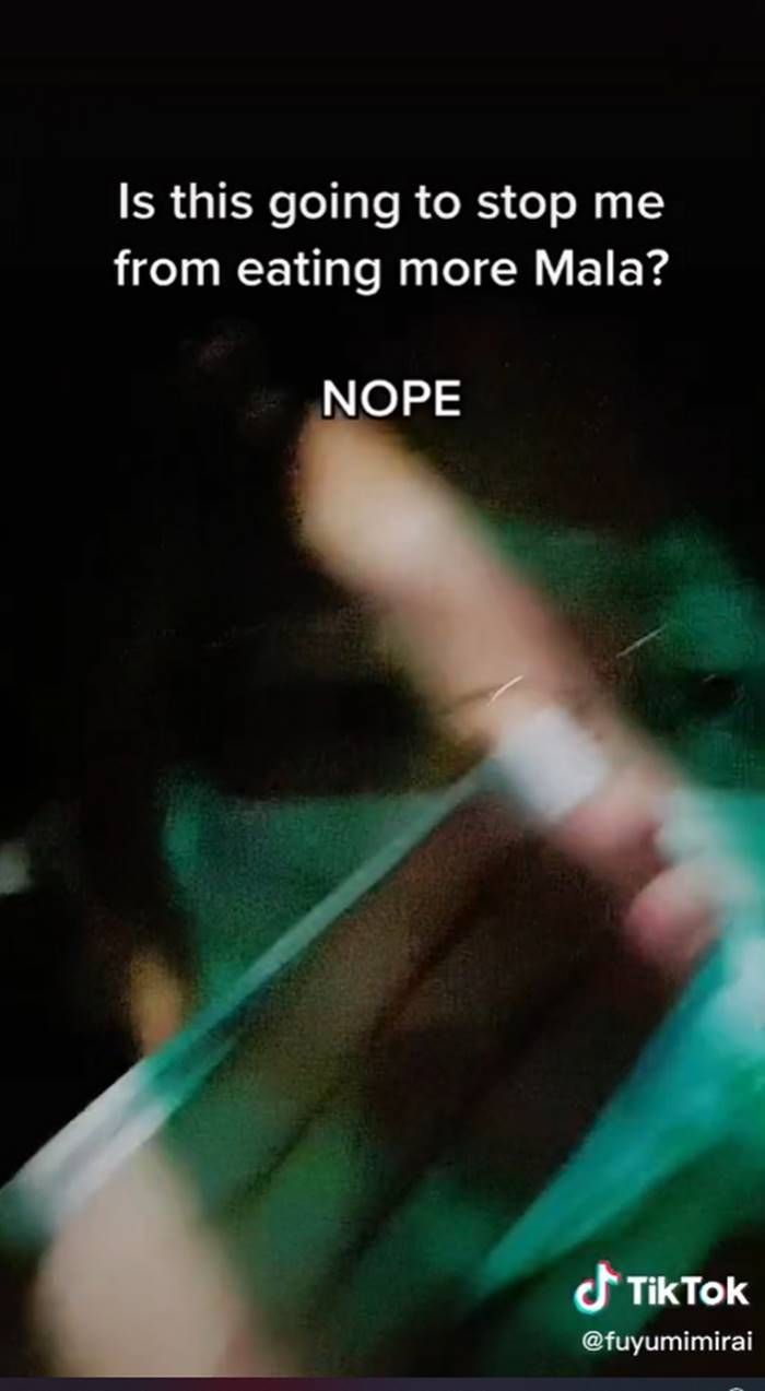 โดยเมื่อวันที่ 17 มิถุนายน 2565 เว็บไซต์เอเชียวัน รายงานว่า สาวผู้ใช้ TikTok ชื่อ Fuyumimirai เพิ่งจะออกมาแชร์ประสบการณ์ของเธอให้แฟน ๆ ผู้ติดตามได้ชมกัน เรื่องมีอยู่ว่าเธอกับแม่ออกไปกินหม่าล่าที่ร้านหม้อไฟแห่งหนึ่ง เมื่อช่วงเย็นวันที่ 16 มิถุนายน ที่ผ่านมา ซึ่งจากคลิปก็จะเห็นว่ามีหม้อหม่าล่าที่เดือดปุด ๆ ดูน่ากิน พร้อมด้วยอาหารอื่น ๆ อยู่เต็มโต๊ะ