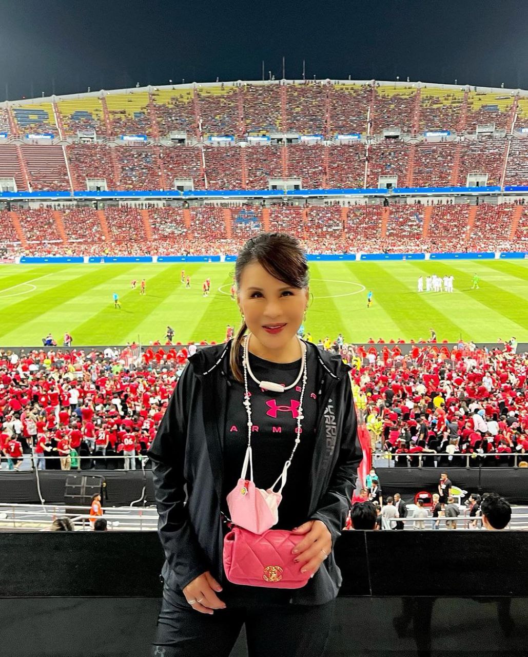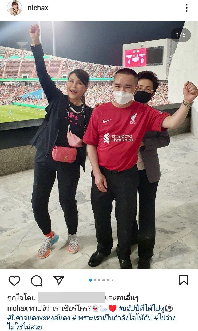 ทั้งนี้ ทูลกระหม่อมหญิงอุบลรัตนราชกัญญา ทรงโพสต์แคปชั่นว่า "ทายซิว่าเราเชียร์ใคร ? #แฮปปี้ที่ได้ไปดู #ปีศาจแดงvsหงส์แดง #เพราะเราเป็นกำลังใจให้กัน #ไม่ว่างไม่ใช่ไม่สวย"