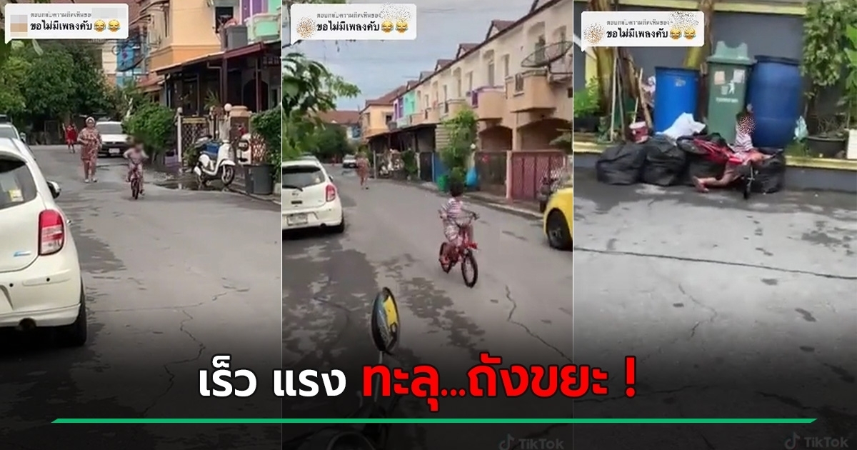 คลิปไวรัล 8 ล้านวิว เจ้าหนูตัวจี๊ดซิ่งจักรยานหนีแม่ เกือบจะรอดอยู่แล้ว แต่คดีพลิกจุดจบนักซิ่งนมกล่องก็เบรกแตกคาถังขยะไปเลย แม่เดินตามมาเชือดนิ่ม ๆ