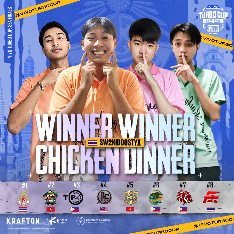 vivo TURBO CUP CHALLENGE บทสรุปเกียรติยศระดับนานาชาติกับทีม SW2kidoStyx จากประเทศไทย ที่คว้าตำแหน่งชนะเลิศ แถมยังคว้า WWCD จากเกมมาครองได้เป็นผลสำเร็จอีกด้วย !!