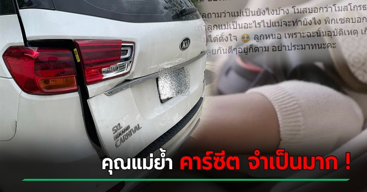 แต่โชคดีไม่ได้รับบาดเจ็บ เพราะให้ลูกนั่งคาร์ซีต พร้อมเผยสาเหตุที่รถถูกชน