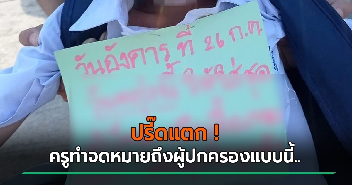 ผู้ปกครองปรี๊ดแตก ครูประจำชั้นเขียนป้ายติดปกคอเสื้อลูกกลับมาบ้าน ทำแบบนี้เหมือนประจานกัน หลังพ่อถูกครูเตะออกจากกลุ่มไลน์ ชาวเน็ตซัดจรรยาบรรณความเป็นครูอยู่ไหน ด้าน ผอ. ขอโทษแล้ว