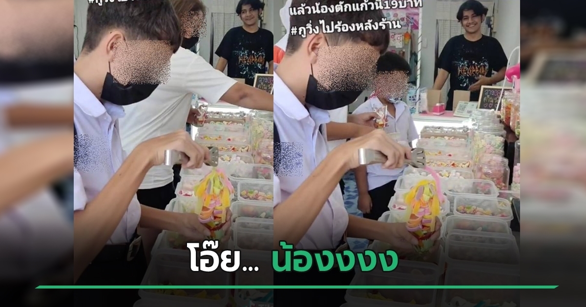 โดยคุณวาวา เจ้าของร้าน เขียนข้อความประกอบคลิปว่า "ฉันเปิดร้านเยลลี่บุฟเฟ่ต์ แล้วน้องตักแก้วนี้ 19 บาท #วิ่งไปร้องหลังร้าน" พร้อมเผยคลิประหว่างที่น้องเรียนชายรายนี้ค่อย ๆ บรรจงหยิบเอาเยลลี่นานาชนิดใส่แก้ว ชนิดที่ว่าเป็นสกิลแบบเทพ หยิบใส่แบบไม่ยั้งเรียง ๆ ซ้อน ๆ กันจนล้นแก้วไปเลย งานนี้คุ้มเสียยิ่งกว่าคุ้ม 555