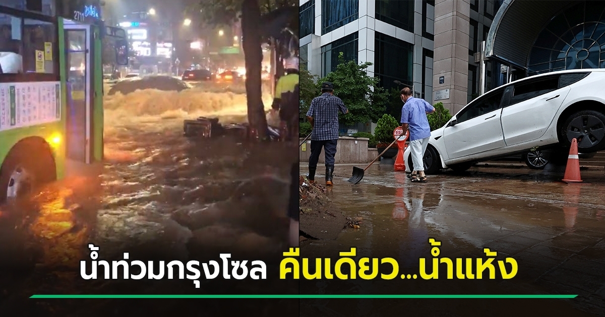 คืบหน้าเหตุน้ำท่วมใหญ่ในกรุงโซล หลังเกิดฝนตกหนักสุดเป็นประวัติการณ์ ถนนเกลื่อนไปด้วยรถที่ถูกกระแสน้ำซัด เสียชีวิตอย่างน้อย 8 ราย