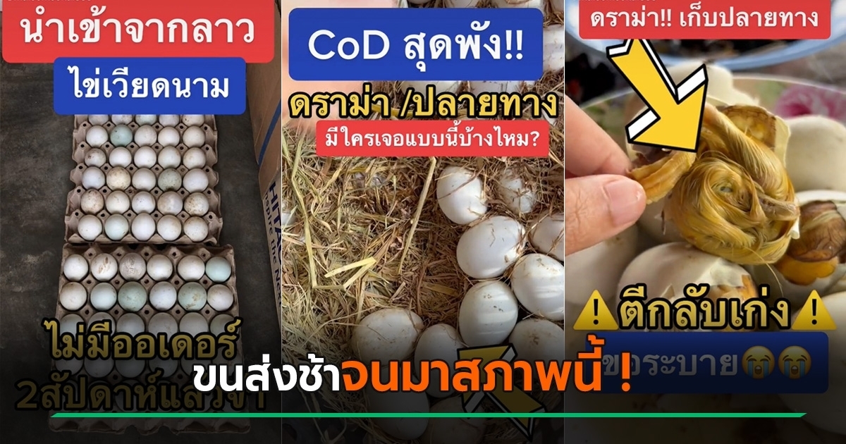 สั่งไข่ตัวอ่อนมาขาย แม่ค้าโวยบริษัทขนส่งล่าช้า ขึ้นสถานะจัดส่งไม่สำเร็จ ทั้งที่รออยู่บ้านตลอด แถมชอบตีกลับพัสดุเก็บเงินปลายทาง ทำของเน่า สภาพไข่ออกมาเป็นตัวเกือบสมบูรณ์ ใครจะกินลง